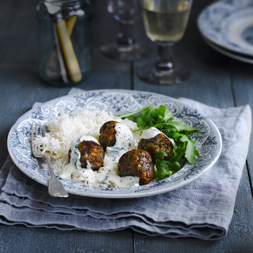 To make the sauce, melt the crème fraîche in the empty pan, then stir in the lemon zest (to taste), basil and some seasoning. Serve the sauce on top of the meatballs alongside some with rice or pasta.